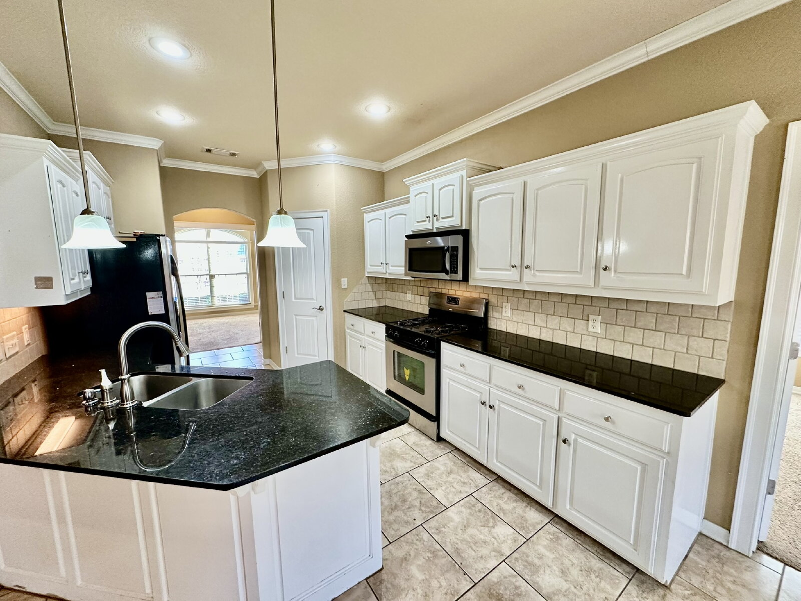 Absolutely beautiful home located at the end of a half cul-de-sac on a spacious lot. The living room features a brick fireplace and flows into the kitchen with stainless steel appliances, gas range, granite countertops, pantry, and a large eat-in area. The primary bedroom includes a tray ceiling, walk-in closet, dual vanities, Jacuzzi tub, and separate shower. Two additional bedrooms share a Jack-and-Jill bathroom, plus an office or 4th bedroom, laundry room, and guest half bath. Enjoy the landscaped backyard with covered patio, deck, fire pit, and wood privacy fence. No homes behind the property, with a stocked pond and trail system just beyond the fence.**No Pets**