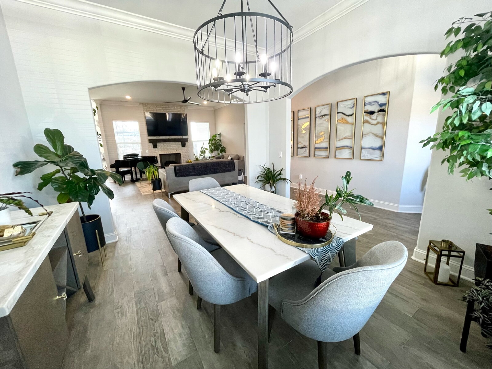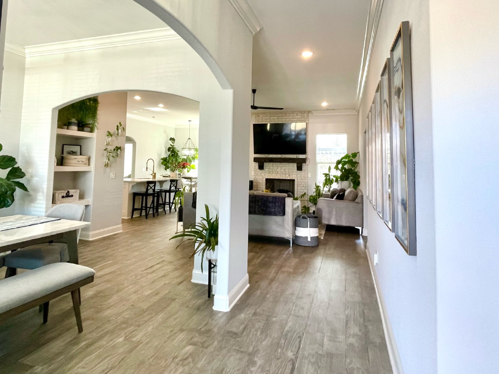Gorgeous, like-new 4 bed, 2 bath home in an amazing location! Features hardwood floors and an open-concept layout with a cozy gas log fireplace. The kitchen offers quartz countertops, a gas range, upgraded hood vent, and breakfast nook. The primary suite includes vaulted ceilings with wood beams, a walk-in closet, and a spa-like bath with a dual-head shower and oversized vanity. Enjoy a covered patio with pergola, stamped concrete, outdoor TV hookup, landscaped yard, and solar lighting. Conveniently located near Rogers High School, shopping, I-49, and Blossom Way Trail with access to the Razorback Greenway. Don’t miss this one! **$250 non-refundable pet fee per pet **